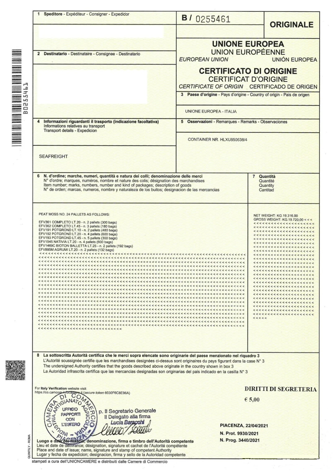 The Customs Tariff Catalogue describes the product as: Peat (grass sphagnum moss) (organic mineral body formed by the accumulation of dead and decaying above-ground plants in swamps (wetlands) (whether dry or wet)) (cultivation medium)