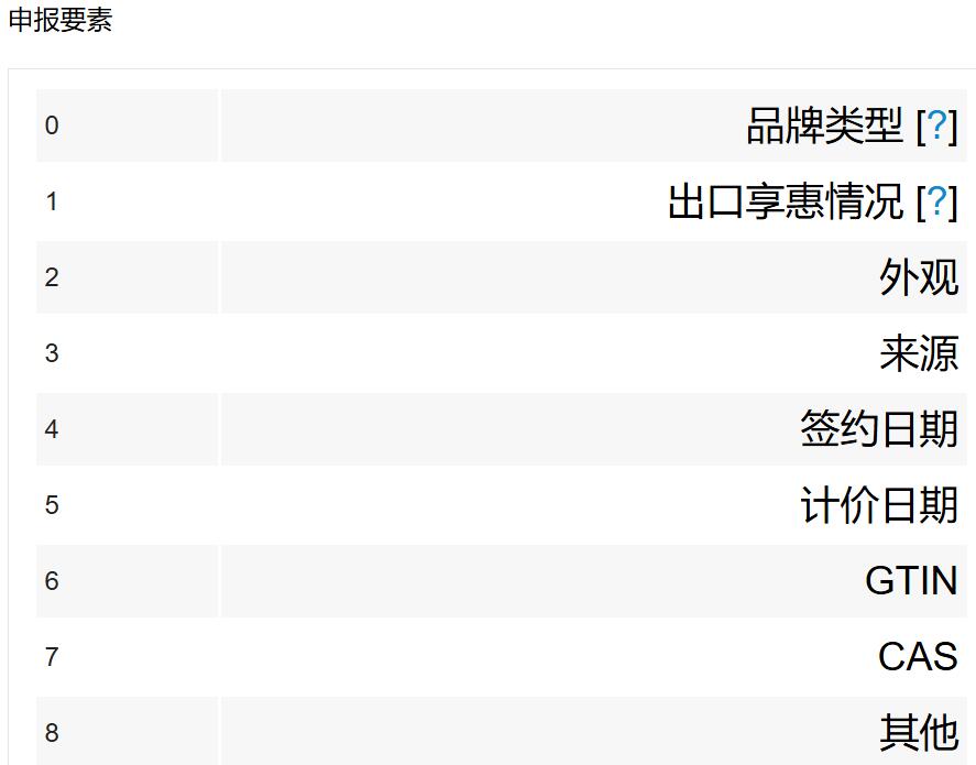 (7) Declaration elements, such as product name, brand, country (region) of origin, specifications, quantity/weight, total value, etc.