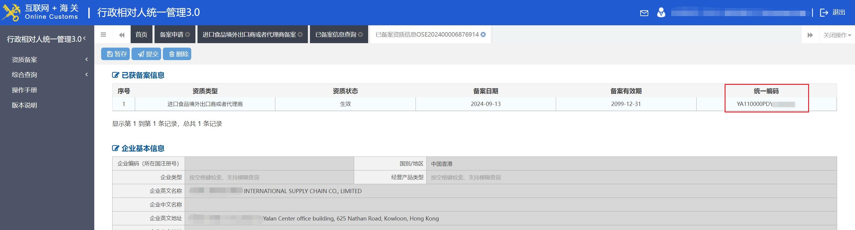 There is no limit on the types of food exported from abroad and the destination is a port in mainland China. Therefore, the overseas exporter agent, the seller on the trade contract invoice, or the shipper on the bill of lading must be registered. After successful registration, an 18-digit code starting with "YA" will be obtained for customs clearance.